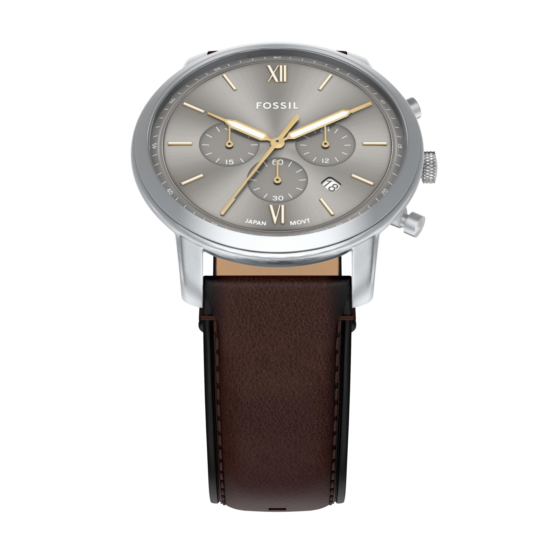 Each Fossil watch is built to last and embodies the bold, creative spirit of its wearer. Our analog watches for men offer precision chronograph use and daily time tracking with three subdials to track minutes, seconds, and 24-hour time. Discover a variety of quartz watches for men, sport watches for men, and brown leather watch options. A sculpted silver-tone stainless steel case and blend of brushed and polished finishes give Neutra a refined, yet versatile profile that’s made to be dressed up or down. Whether you seek dress watches for men or chronograph watches for men, our range caters to your needs. Choose a Fossil watch from our selection—be it the Fossil watch men or watches for men Fossil. With options like a mens dress watch, each timepiece showcases a harmonious blend of function and style.