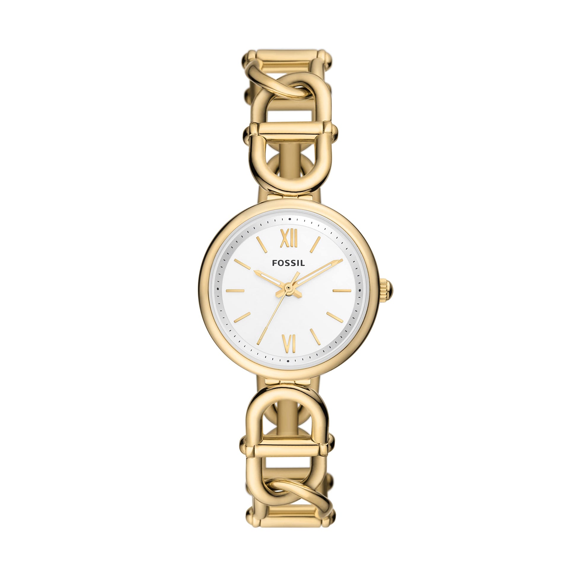 Fossil Women's Carlie Quartz Stainless Steel Three-Hand Dainty Gold Chain/White Watch, Model ES5272