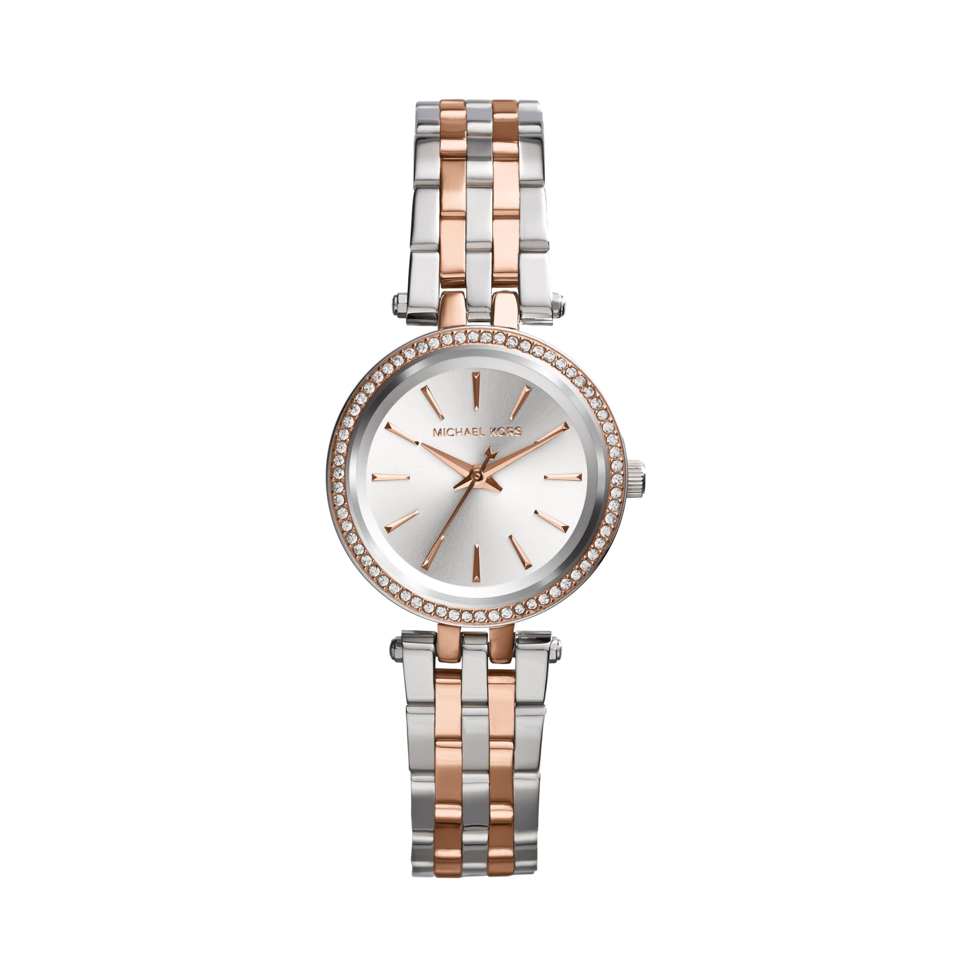 - This Michael Kors Petite Darci watch is both feminine and versatile in two-tone stainless steel with a pavé crystal-embellished topring.