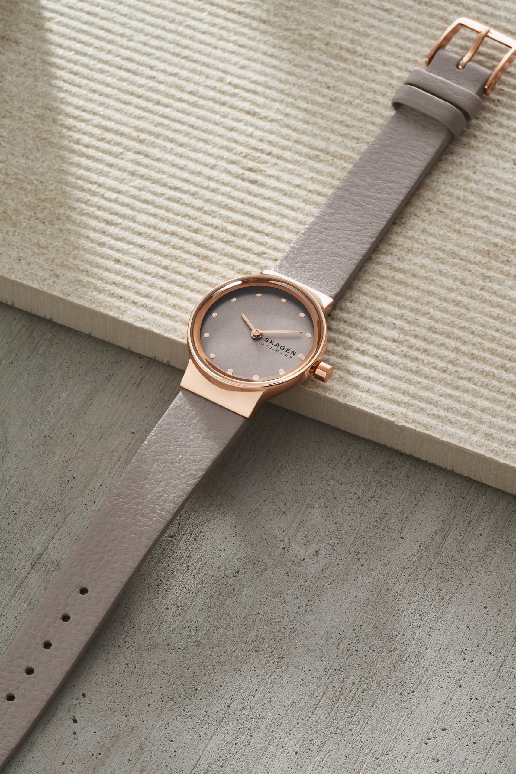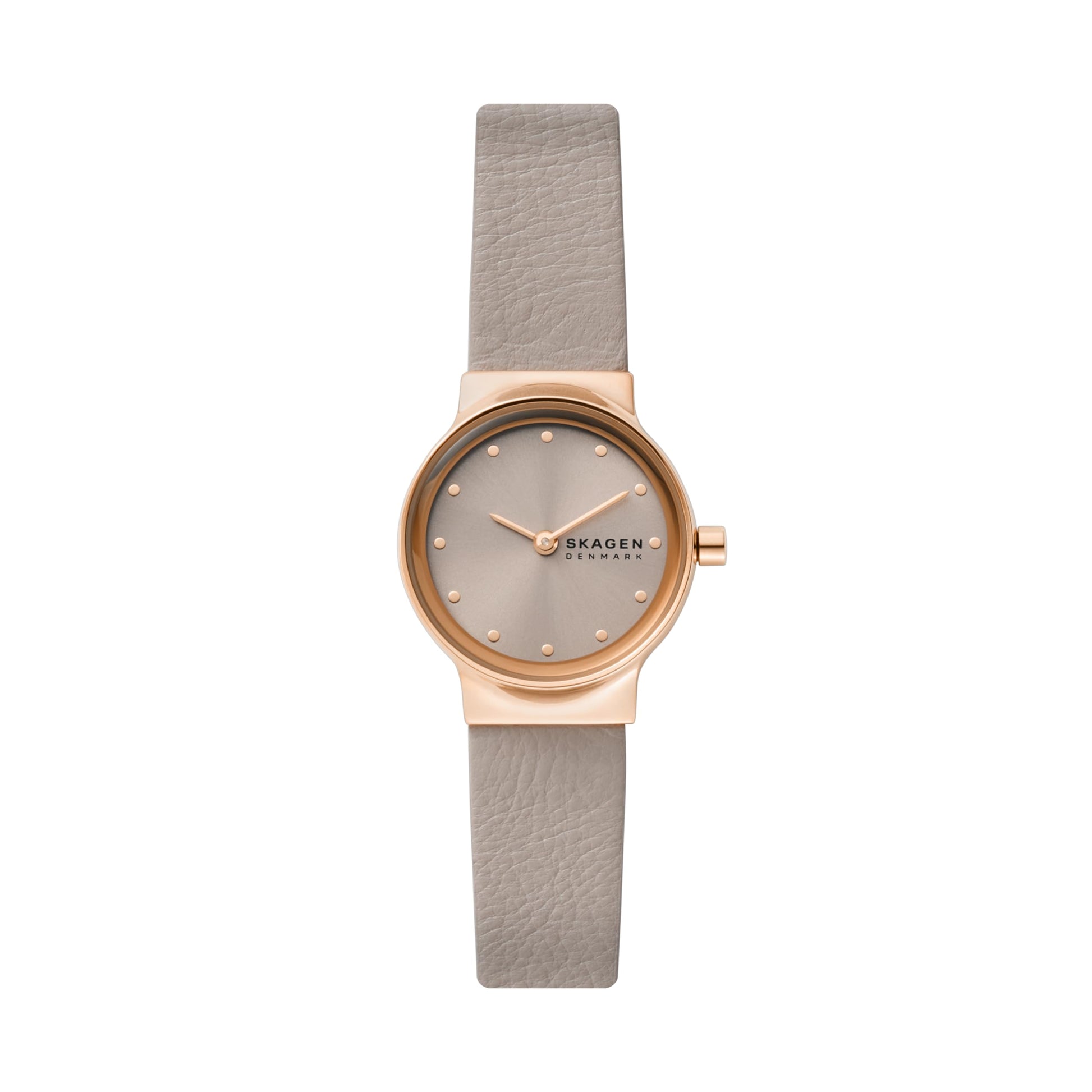 Skagen Women's Freja Lille Two-Hand Rose Gold Stainless Steel and Gray Leather Band Watch (Model: SKW3005)