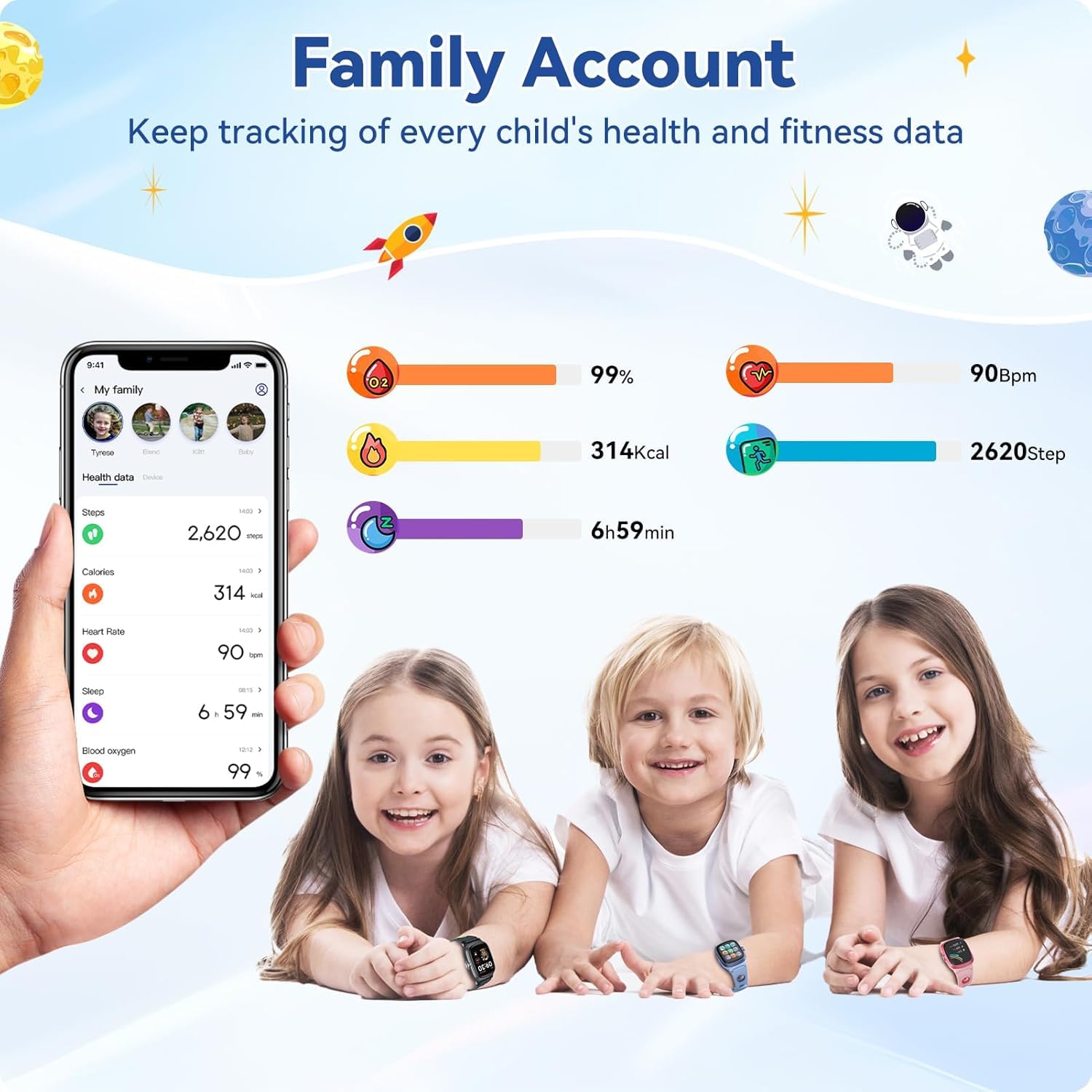 - 🏅【Kids Fitness Watch with Family Account】Kids can effortlessly track their steps/distance/calories burned and active minutes throughout the day. Supports 20 different sports modes, including favorites like running, basketball, swimming and more. Helping to inspire child a love for movement and healthy habits. Easily connect and manage multiple watches within one family account, making it simple for parents to check your children's activity and health data