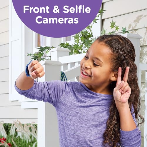 Details: Strike a pose! This smartwatch features two cameras, a high-resolution screen, a splash-proof metal body and a fashionable watchband that makes this full-function smartwatch the coolest tech around. Get creative with the dual cameras to personalize your clock face, photos and videos with the effects and filters. Find AR monsters in the real world, compose music using instruments and sound effects, and play exciting movement games to see your step count soar. Practice telling time with over 50 clock faces or shake the watch to hear the time out loud. Download additional games and more from the Learning Lodge. Set to English, Spanish or French. Intended for ages 4+ years. Includes built-in, rechargeable lithium-ion battery and micro-USB cable. Do not charge using a third-party adapter.